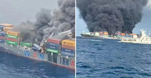 快訊/萬海貨輪大爆炸!近50個貨櫃炸飛入海「2台灣人失蹤」濃煙沖天危急情況曝