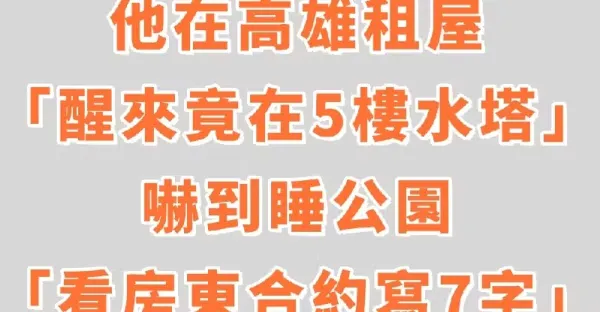 每晚遭紅衣女掐脖!他在高雄租屋「醒來竟在5樓水塔」...嚇到睡公園「看房東合約寫7字」崩潰了