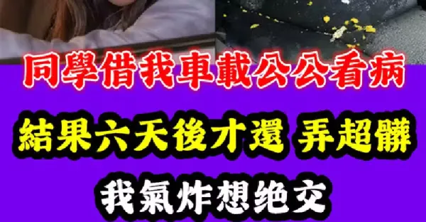 同學需要載公公看病!忙和我借車「結果6天後才還」還弄超髒 我氣炸想絕交「直到昨天洗車」我瞬間臉紅了