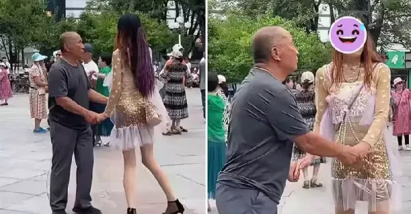 大爺和「靚女」廣場跳舞引注目!飄逸秀髪逆天長腿卻「毀在一個回眸」,網驚:背多分,秒變正面「兇手」!