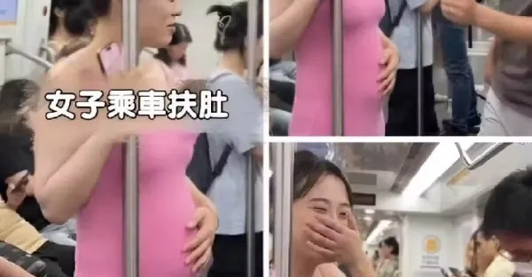 她扶肚站捷運,暖男秒起身「給孕婦讓坐」!她淡定回一句讓「全車空氣凝結」網笑翻:這根本社死現場