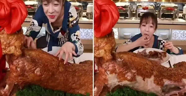 大胃王挑戰80公斤「烤全羊」,鏡頭傾斜45度「看得見破綻」,網友怒評:吃不起就別裝!!