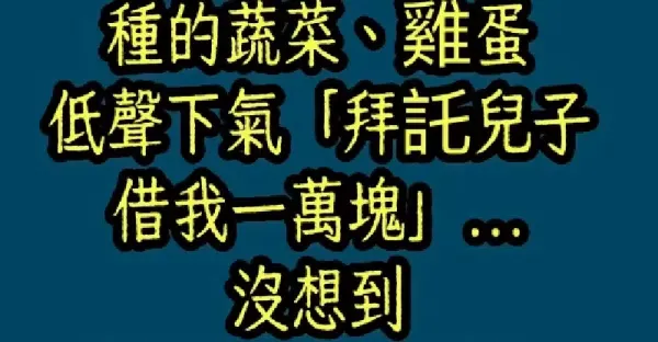 老伴生病了!我帶著自家種的蔬菜、雞蛋,低聲下氣「拜託兒子借我一萬塊」...沒想到「兒子媳婦的回應」令我潸然淚下
