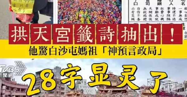 拱天宮籤詩抽出!!他驚白沙屯媽祖「神預言政局!」28字顯靈了