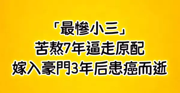 「最慘小三」苦熬7年逼走原配,嫁入豪門3年後患癌而逝