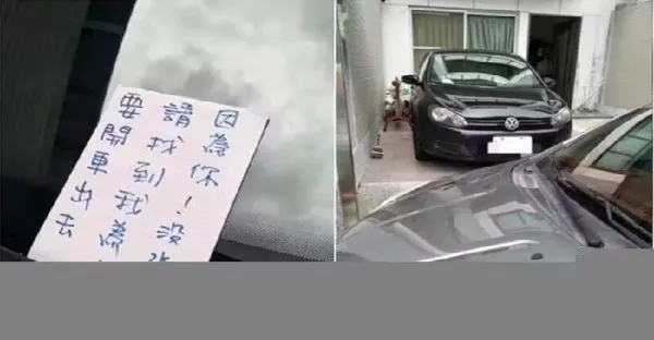 沒水平 「車子直接停進別人家裡」自己爽去台北玩,女屋主「拉鐵門鎖車」霸氣留紙條:等我回國再說