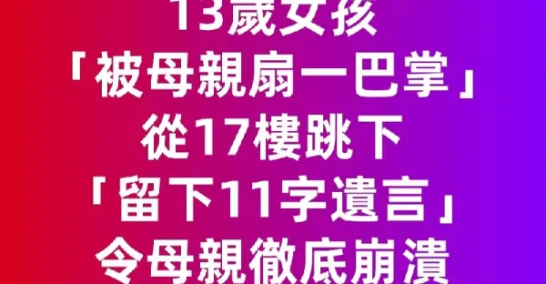 我把命還你!13歲女孩「被母親扇一巴掌」從17樓跳下,「留下11字遺言」令母親徹底崩潰 #才13歲啊