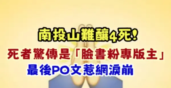 快訊/南投山難釀4死!死者驚傳是「臉書粉專版主」 最後PO文惹網淚崩