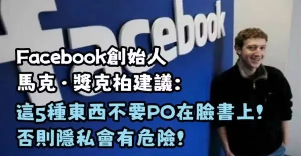 Facebook創始人 馬克·獎克柏建議:這5種東西不要PO在臉書上,否則隱私會有危險!