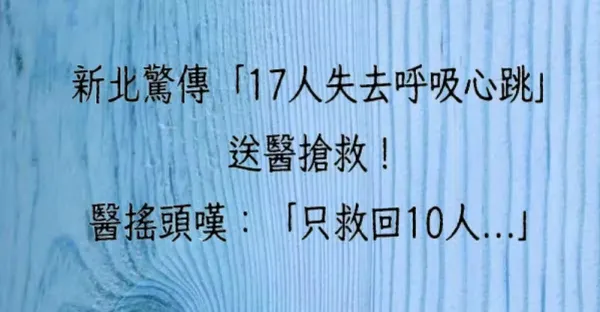新北驚傳「17人失去呼吸心跳」送醫搶救!醫搖頭嘆:「只救回10人~」