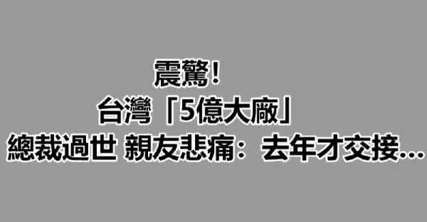 震驚!台灣「5億大廠」總裁過世 親友悲痛:去年才交接…