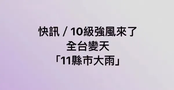 快訊/10級強風來了 全台變天「11縣市大雨」