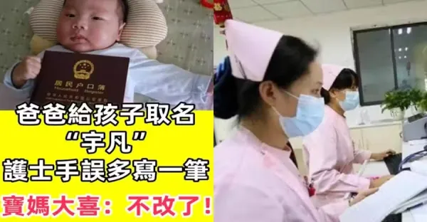 爸爸給孩子取名「宇凡」,護士手誤多寫一筆,寶媽大喜:不改了!