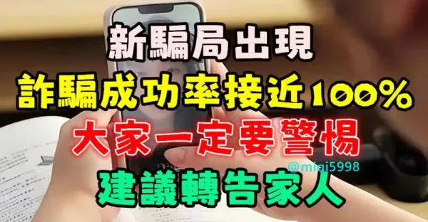 新騙局出現,詐騙成功率接近100%,大家一定要警惕,建議轉告家人!