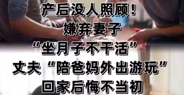 產後沒人照顧!嫌棄妻子「坐月子不幹活」, 丈夫「陪爸媽外出遊玩」回家後悔不當初
