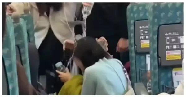 高鐵藍衣女子「被礦泉水淋頭」蹲地上狂尖叫 一旁乘客「還原糾紛始末」警察到場後續曝光