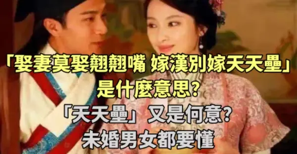 俗話:「娶妻莫娶翹翹嘴,嫁漢別嫁天天壘」是什麼意思?「天天壘」又是何意?未婚男女都要懂