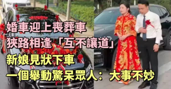 婚車迎上喪葬車狹路相逢「互不讓道」,新娘見狀下車一個舉動驚呆眾人:大事不妙!