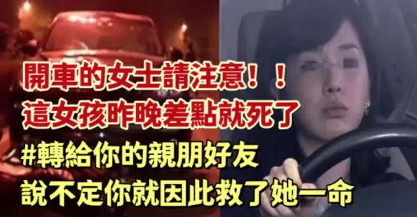 開車的女士請注意!!這女孩昨晚差點就死了..(轉給你的親朋好友,說不定你就因此救了她一命)