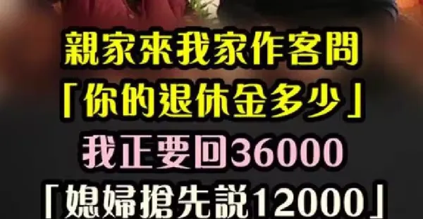 親家來我家作客問:「你的退休金多少」 我正要回36000「媳婦搶先說12000」我氣炸了:會讓人看不起我! 結果隔天親家公態度變了…