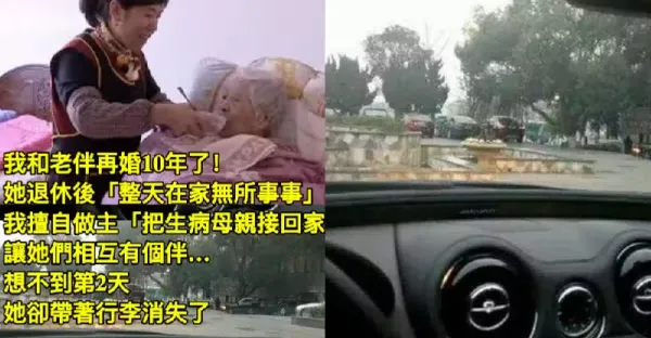 我和老伴再婚10年了!她退休後「整天在家無所事事」 我擅自做主「把生病母親接回家」讓她們相互有個伴;想不到第2天她卻帶著行李消失了