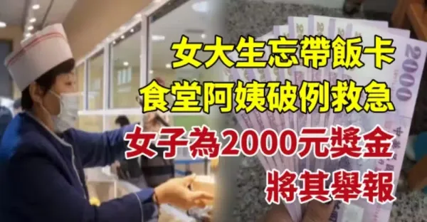 女大生忘帶飯卡,食堂阿姨破例救急,女子為2000元獎金將其舉報