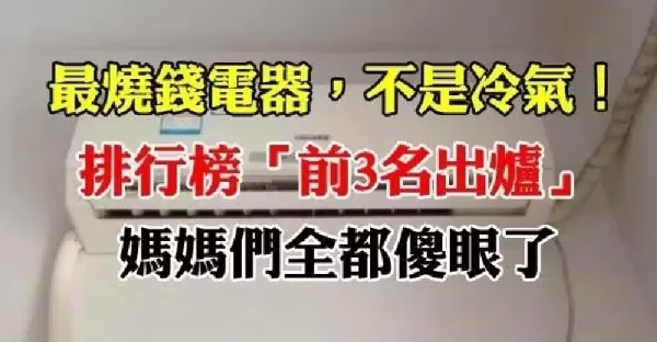 最燒錢電器竟「不是冷氣」!排行榜「前3名出爐」媽媽們都傻眼 冠軍「從沒關掉過」難怪帳單這麼貴