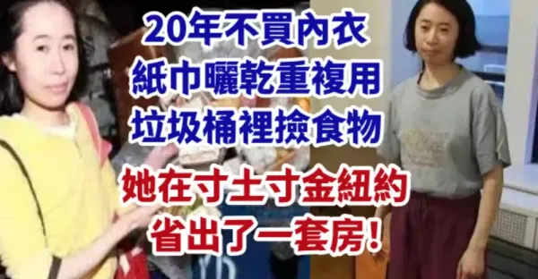20年不買內衣,紙巾曬乾重用,垃圾桶里撿食物,她在寸土寸金紐約「省出了一套房」!