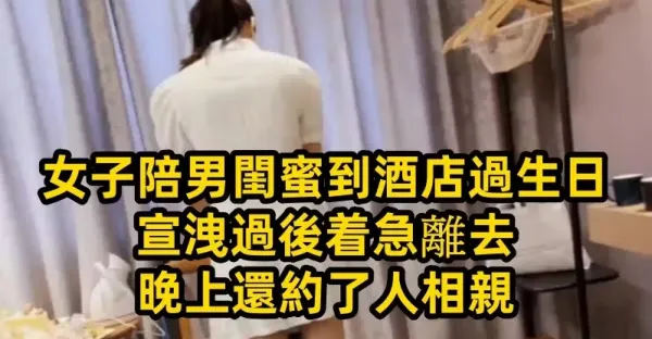 女子陪男閨蜜到酒店過生日,宣洩過後著急離去:晚上還約了人相親