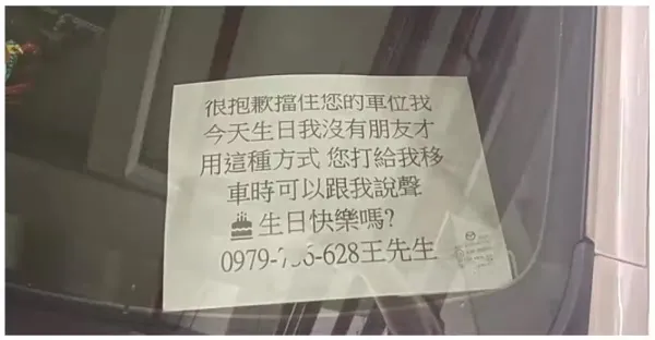 陌生人停車擋門口!留紙條問「可以祝我生日快樂嗎」 還裝可憐喊「我沒朋友...」網神回應笑翻