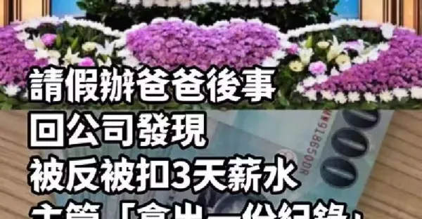 請假辦爸爸後事,回公司發現,被反被扣3天薪水,主管「拿出一份紀錄」讓我哽咽