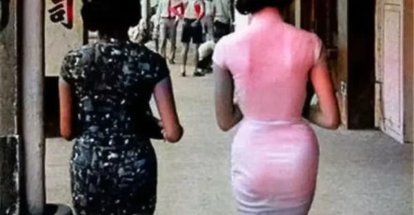 民國女性上色老照片,穿著旗袍,背影迷人,脫離了舊時代的束縛