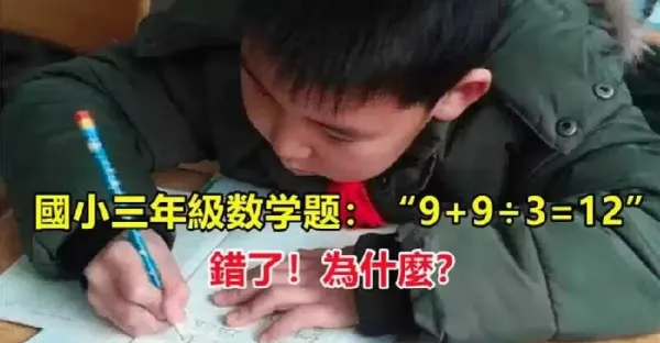 我兒子哪錯了?國小三年級數學題:「9+9÷3=12」被老師打叉!家長質問老師「反被打臉」:好好審題~