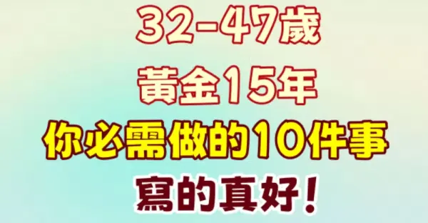 32至47歲,黃金15年,你必需做的10件事,寫的真好