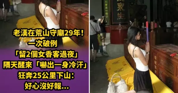 老翁在荒山守廟29年!一次破例「留2個女香客過夜」 隔天醒來「嚇出一身冷汗」狂奔25公里下山:好心沒好報...