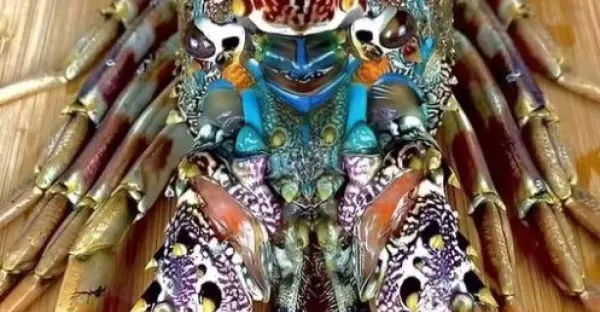 漁民捕到一頭六公斤重的「七彩龍蝦」,身體加觸鬚長達113cm,1天後竟賣出600000