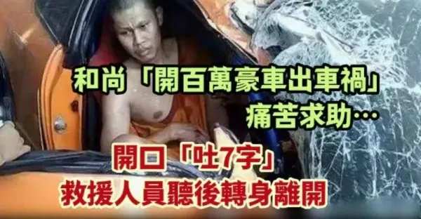 和尚「開百萬豪車出交通事故」痛苦求助…開口「吐7字」救援人員聽後轉身離開