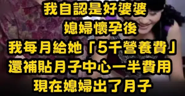 我自認是好婆婆,媳婦懷孕後,我每月給她「5千營養費」、還補貼月子中心一半費用,現在媳婦出月子,竟要求「給錢才能看孫」!媳婦看我沒要匯錢的意思,直接打來說了一句...