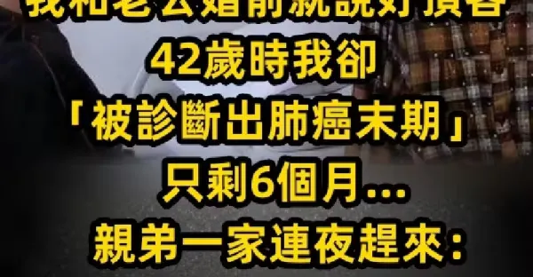 我和老公婚前就說好頂客,42歲時我卻「被診斷出肺癌末期」只剩6個月…親弟一家連夜趕來:「姊,反正妳沒生小孩,財產都留給我們吧!」 #下一秒老公開口了