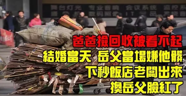 爸爸撿破爛被看不起!結婚當天「岳父當場嫌他髒」 爸爸羞愧低頭「下秒飯店老闆出來」換岳父臉紅了