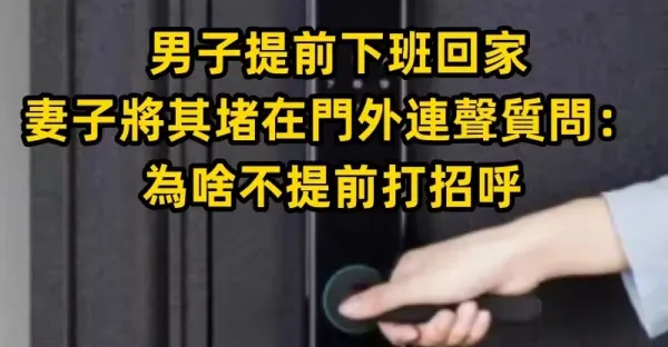 男子提前下班回家,妻子將其堵在門外連聲質問:為啥不提前打招呼