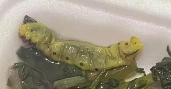 點燙青菜見「粗大毛毛蟲」橫躺餐盒裡!網友「見1亮點」崩潰:要吐了!