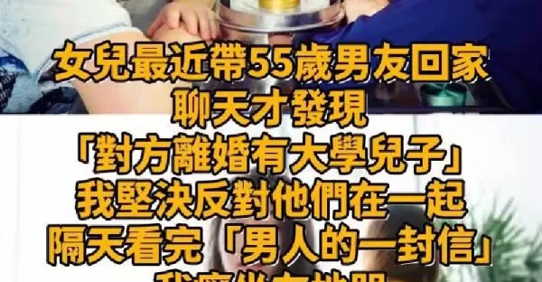 女兒最近帶55歲男友回家,聊天才發現「對方離婚已有大學兒子」,我堅決反對他們在一起,隔天看完「男人的一封信」我癱坐在地哭