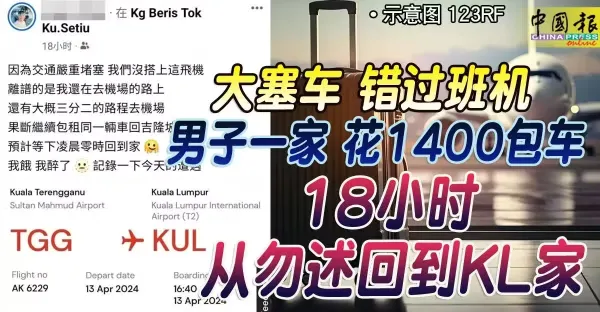 大塞車 錯過班機 男子一家 花1400包車 18小時 從勿述回到KL家