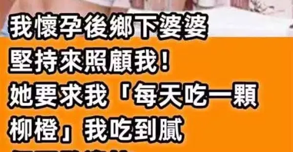 我懷孕後鄉下婆婆堅持來照顧我! 她要求我「每天吃一顆柳橙」我吃到膩但不敢違抗…結果到了生產那天「看到寶寶」我瞬間落淚