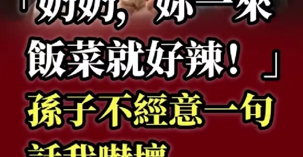 「奶奶,妳一來,飯菜就好辣!」孫子不經意一句話我嚇壞,再追問我才恍然大悟…