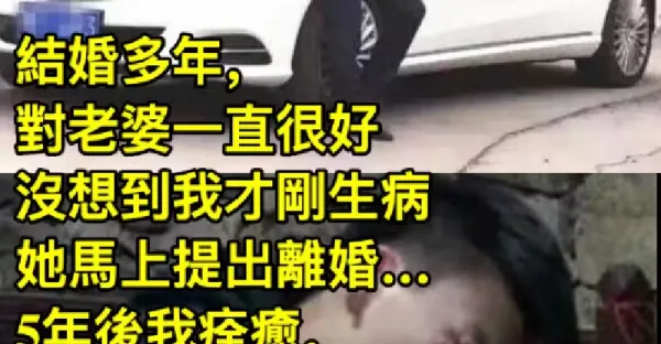結婚多年,對老婆一直很好,沒想到我才剛生病,她馬上提出離婚…5年後我痊癒,又做生意賺錢「故意開跑車去前妻家」,無意聽見「鄰居阿嬤的話」痛哭後悔