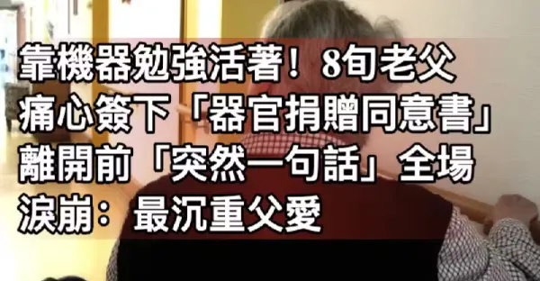靠機器勉強活著!8旬老父痛心簽下「器官捐贈同意書」 離開前「突然一句話」全場淚崩:最沉重父愛
