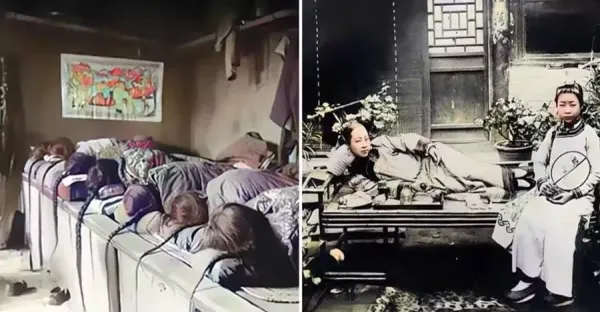 晚清老照片:修腳匠埋頭苦幹,七個人睡一張床,通房小妾相貌平平
