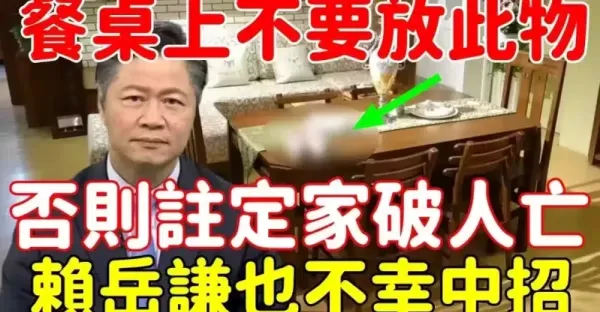 太嚇人!餐桌上不要擺放此物,否則註定家破人亡,賴岳謙不幸中招,慘遭封殺0收入,再忙也花5分鐘看看,千萬別重蹈覆轍!